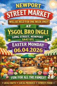 THE MARKET WILL BE HELD IN THE CAR PARK OF YSGOL BRO INGLI, LONG STREET